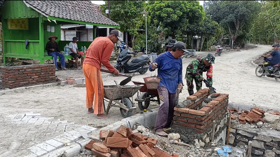 Untuk itu Sertu Jojon Babinsa Desa Mojo Koramil 14/Bringin Kodim 0805/Ngawi melaksanakan giat Karya Bhakti pembuatab gapura di Desa Mojo Kecamatan Bringin, Senin (04/08/2025).