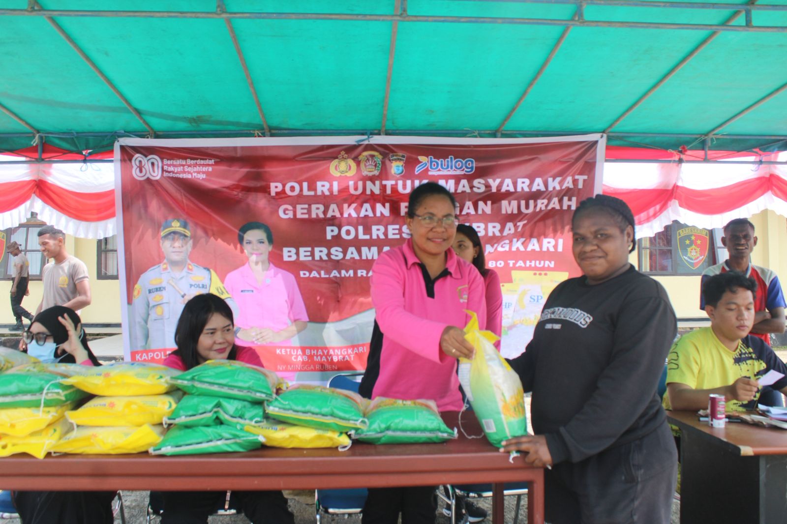 Kapolres Maybrat Kompol Ruben Obed Kbarek, S.I.K. dalam sambutannya menyampaikan bahwa kegiatan ini merupakan wujud kepedulian Polri bersama Bhayangkari kepada masyarakat, khususnya menjelang perayaan HUT RI ke-80.