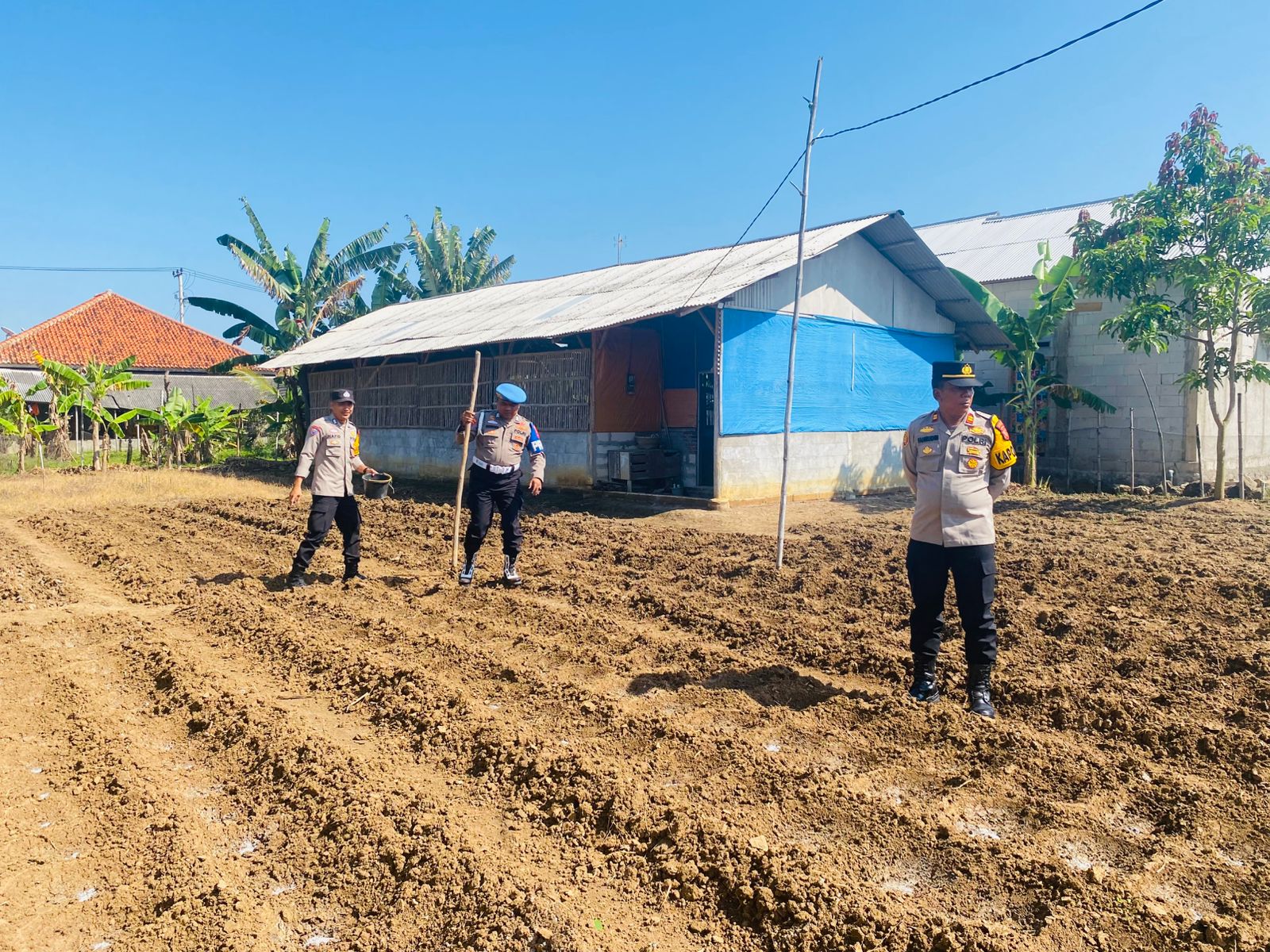 Indramayu – Polsek Bongas, Polres Indramayu, Polda Jabar tanam jagung di lahan pekarangan Desa Cipaat, Kecamatan Bongas, Selasa (26/8/2025) pagi.