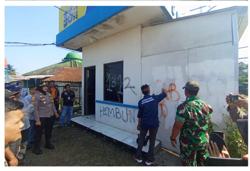 Kapolsek Dramaga Polres Bogor dan Forkopimcam Bersihkan Vandalisme Bermuatan SARA di Pospol JLD