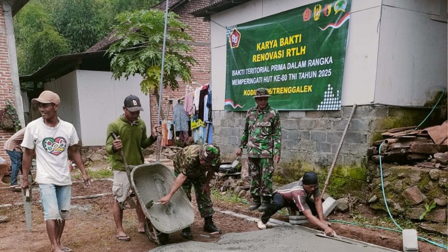 Trenggalek, Ainews.id – Dalam rangka memeriahkan Hari Ulang Tahun (HUT) ke-80 Tentara Nasional Indonesia (TNI), satuan teritorial kewilayahan kembali menunjukkan performanya dalam memberikan karya nyata kepada masyarakat. Melalui program Bakti Teritorial Prima Renovasi Rumah Tidak Layak Huni (Rutilahu), Kodim 0806/Trenggalek bersama Koramil 0806-03/Durenan melakukan renovasi rumah milik Mujanar, warga RT 21 RW 05 Dusun Pingit Kulon, Desa Gador, Kecamatan Durenan, Senin (15/9/2025).