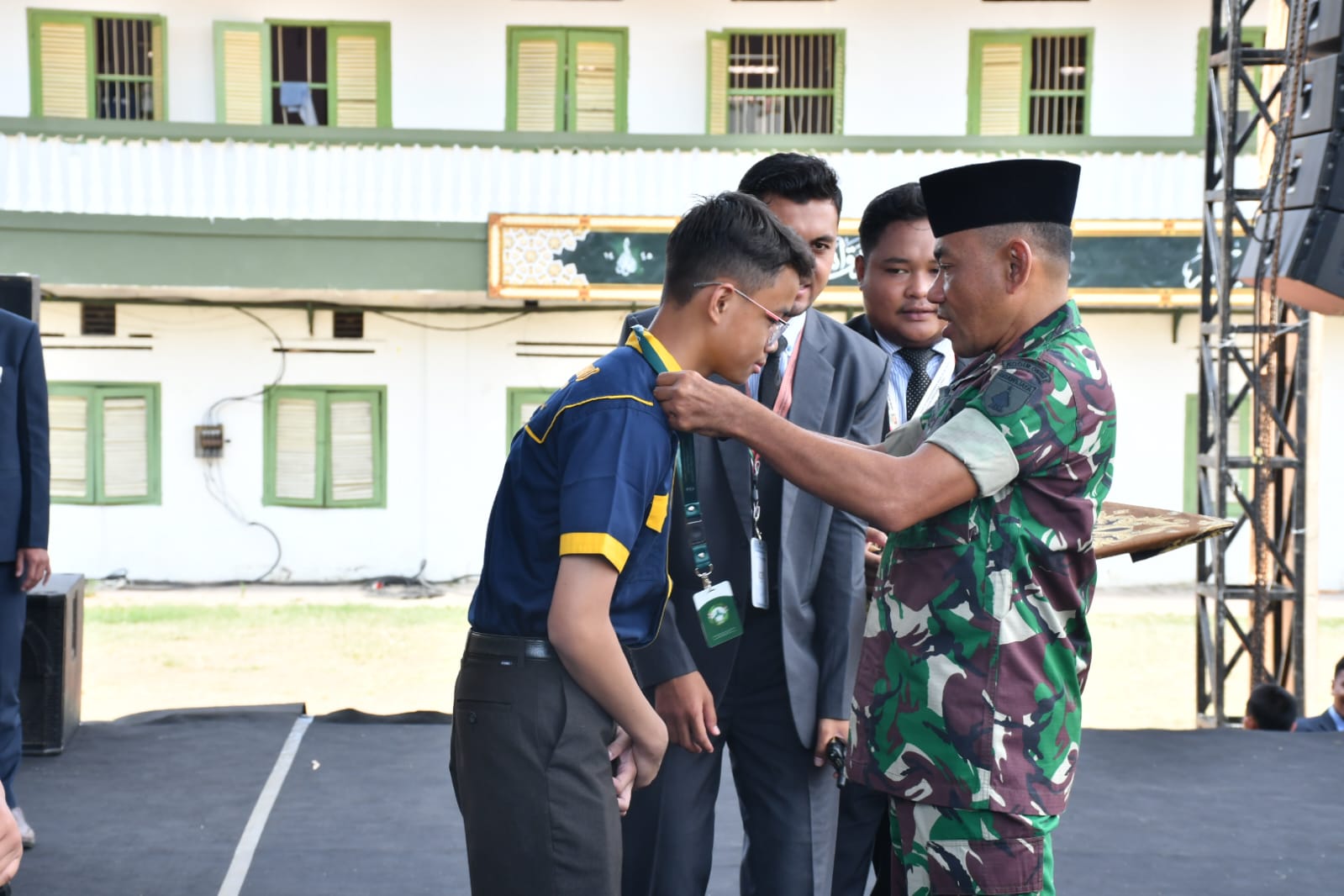 PONOROGO,BUSERJATIM.COM GROUP,-Kepala Staf Kodim 0802/Ponorogo Mayor Inf Agus Budi C mewakili Komandan Kodim 0802/Ponorogo Letkol Inf Dwi Soerjono menghadiri acara Pembukaan Gontor Marching Band Competition bertempat di Lapangan Sepak Bola PMDG (Pondok Modern Darussalam Gontor) Desa Gontor Kecamatan Mlarak Kabupaten Ponorogo, Selasa (16/09/2025).