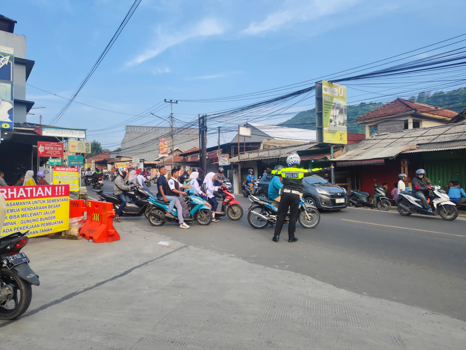 Anggota Polsek Ciampea Polres Bogor Laksanakan Pengaturan Lalu Lintas Pagi Hari