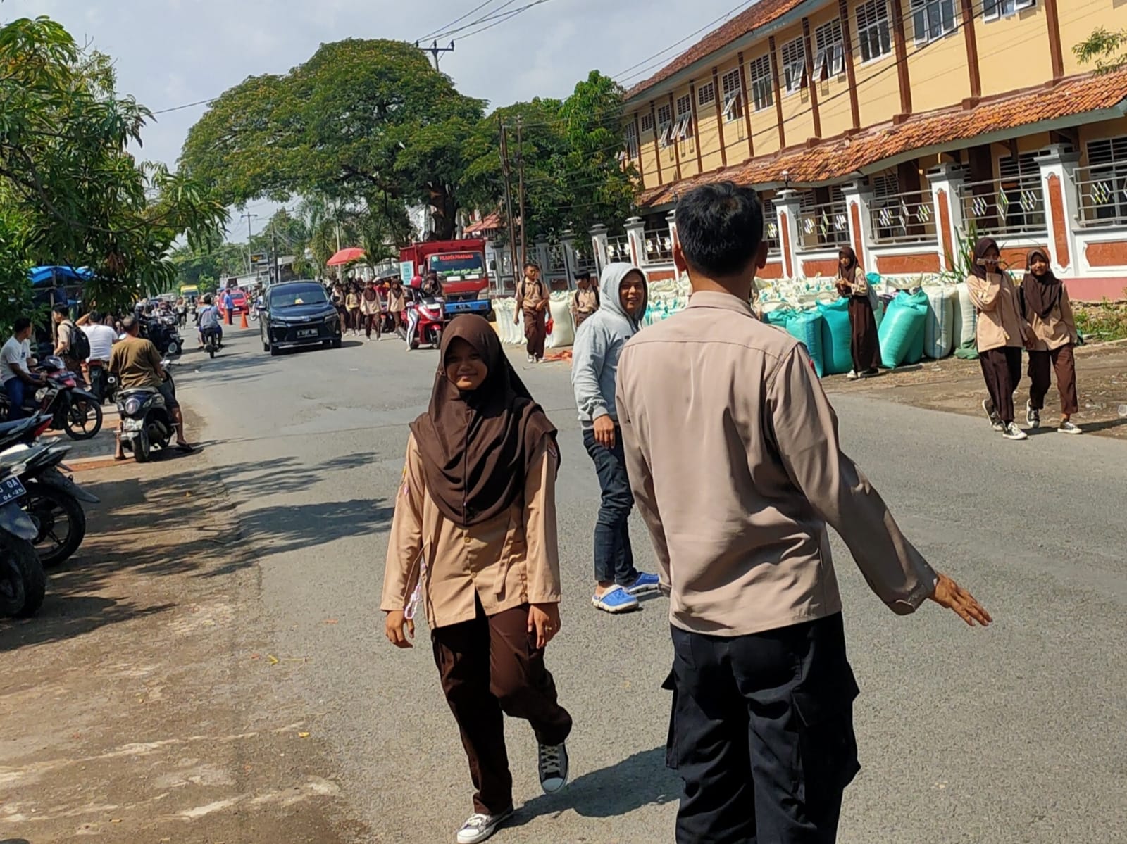 Indramayu – Personil Polsek Gabuswetan jajaran Polres Indramayu Polda Jabar melaksanakan kegiatan patroli sekaligus pengaturan lalu lintas (gatur) sebagai upaya untuk mengantisipasi terjadinya kecelakaan lalu lintas di wilayah hukumnya. Jum’at pagi (19/9/2025)