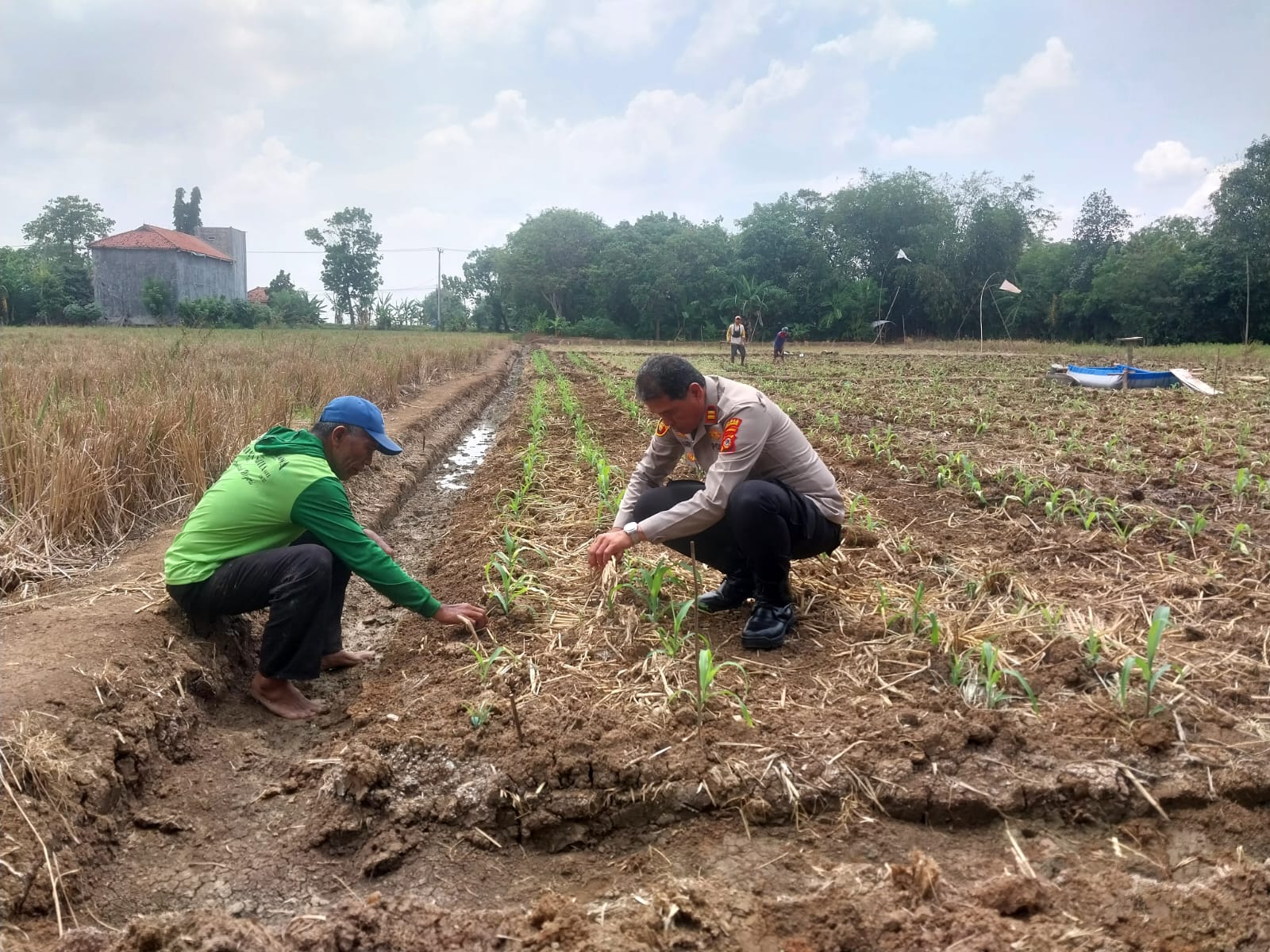 “Kami ingin memastikan tanaman jagung tumbuh dengan baik, sekaligus memberikan motivasi kepada petani agar tetap semangat,” ujar IPTU H. Karnadi di sela-sela kunjungannya.