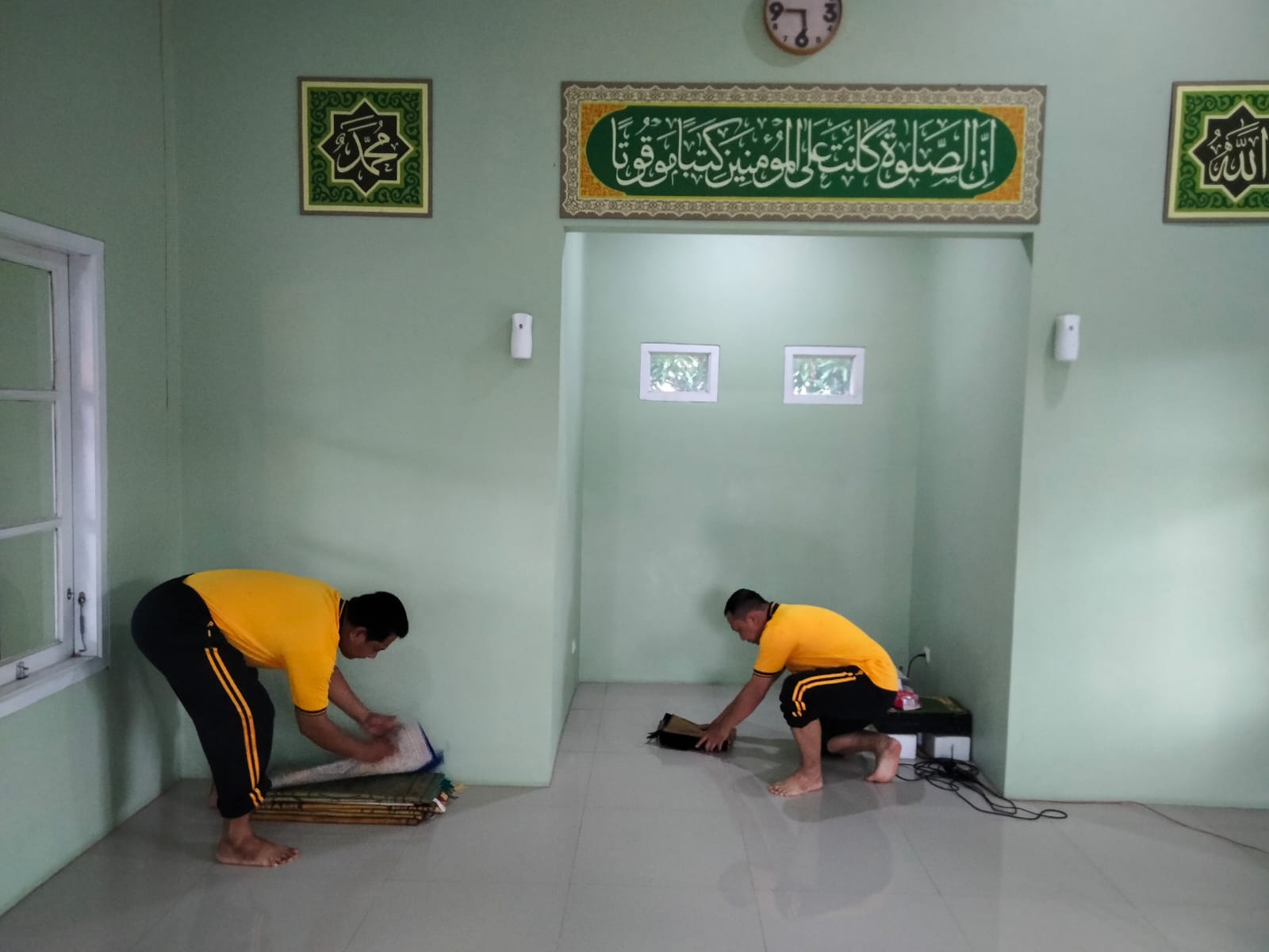 Para personel secara gotong royong membersihkan area mushola, mulai dari menyapu dan mengepel lantai, merapikan karpet serta perlengkapan ibadah, membersihkan jendela, hingga menata lingkungan halaman dan area sekitar Mako Polsek Sliyeg agar tetap bersih dan nyaman.