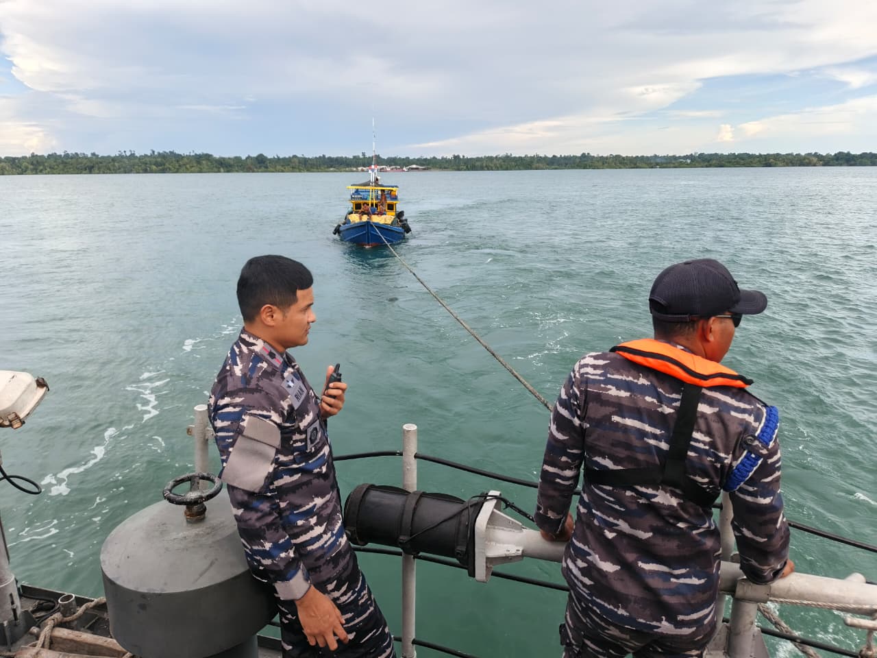 Melihat kondisi tersebut, Komandan KRI Gulamah-869 Mayor Laut (P) Rian Prasetian, S.S.T.Han., S.T., segera memerintahkan unsur untuk merapat dan melaksanakan pertolongan. Pada pukul 16.00 WIT dilaksanakan aksi tunda (towing), kemudian pukul 16.20 WIT KRI Gulamah-869 bergerak menuju Dermaga Perikanan Sorong dengan tetap mengutamakan faktor keselamatan pelayaran.