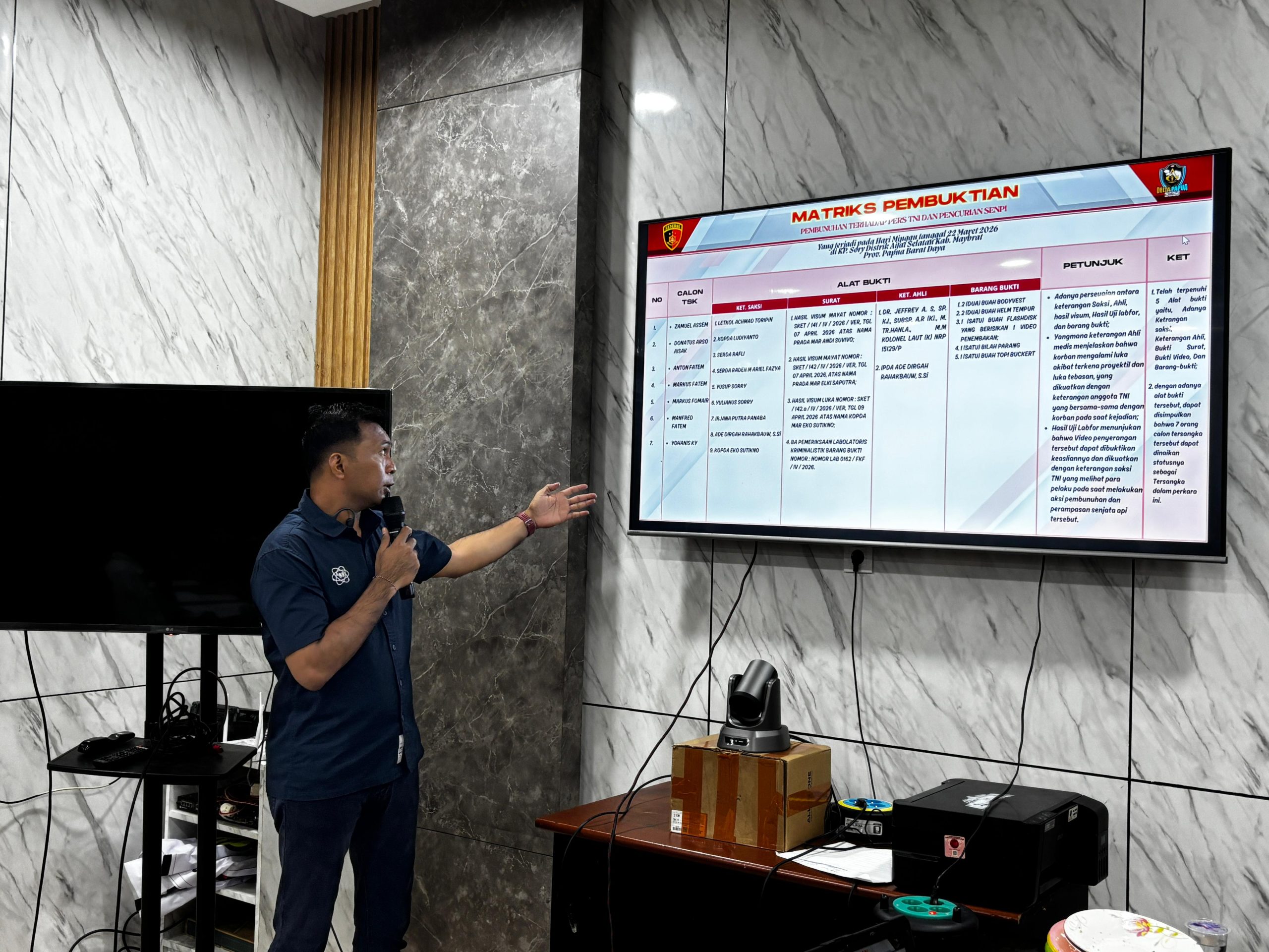 Gelar perkara ini dilakukan untuk menentukan status hukum para pelaku dalam kasus penembakan yang terjadi pada Minggu, 22 Maret 2026, di Pos Tinjau Satgas Gobang VII Yon 9 Marinir, Kampung Sorry, Distrik Aifat Selatan.