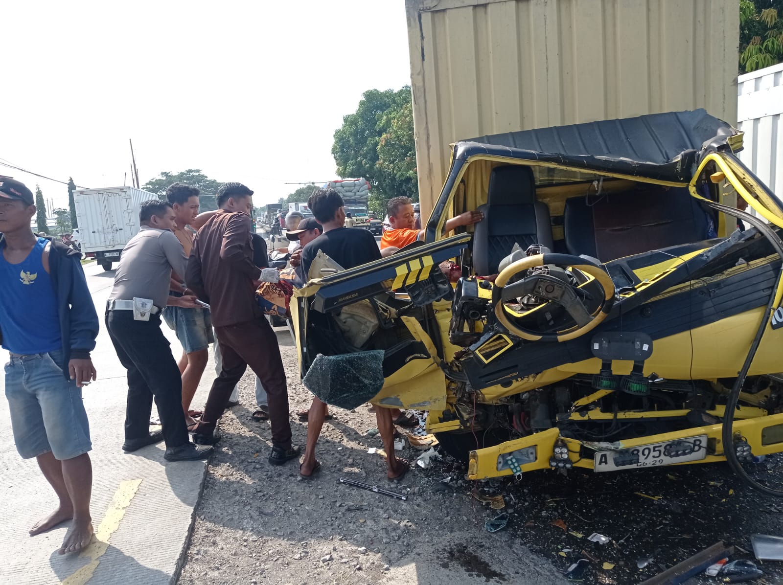 Peristiwa naas tersebut terjadi sekira pukul 08.50 WIB. Berdasarkan data yang dihimpun, kendaraan yang terlibat adalah Mitsubishi Colt Diesel Nopol K 9772 GP yang dikemudikan oleh Ali Mahfud (35), warga Demak, Jawa Tengah, serta truk box Nopol A 8958 B yang dikemudikan oleh Nurjaya Bin Pulung (54), warga Bekasi.