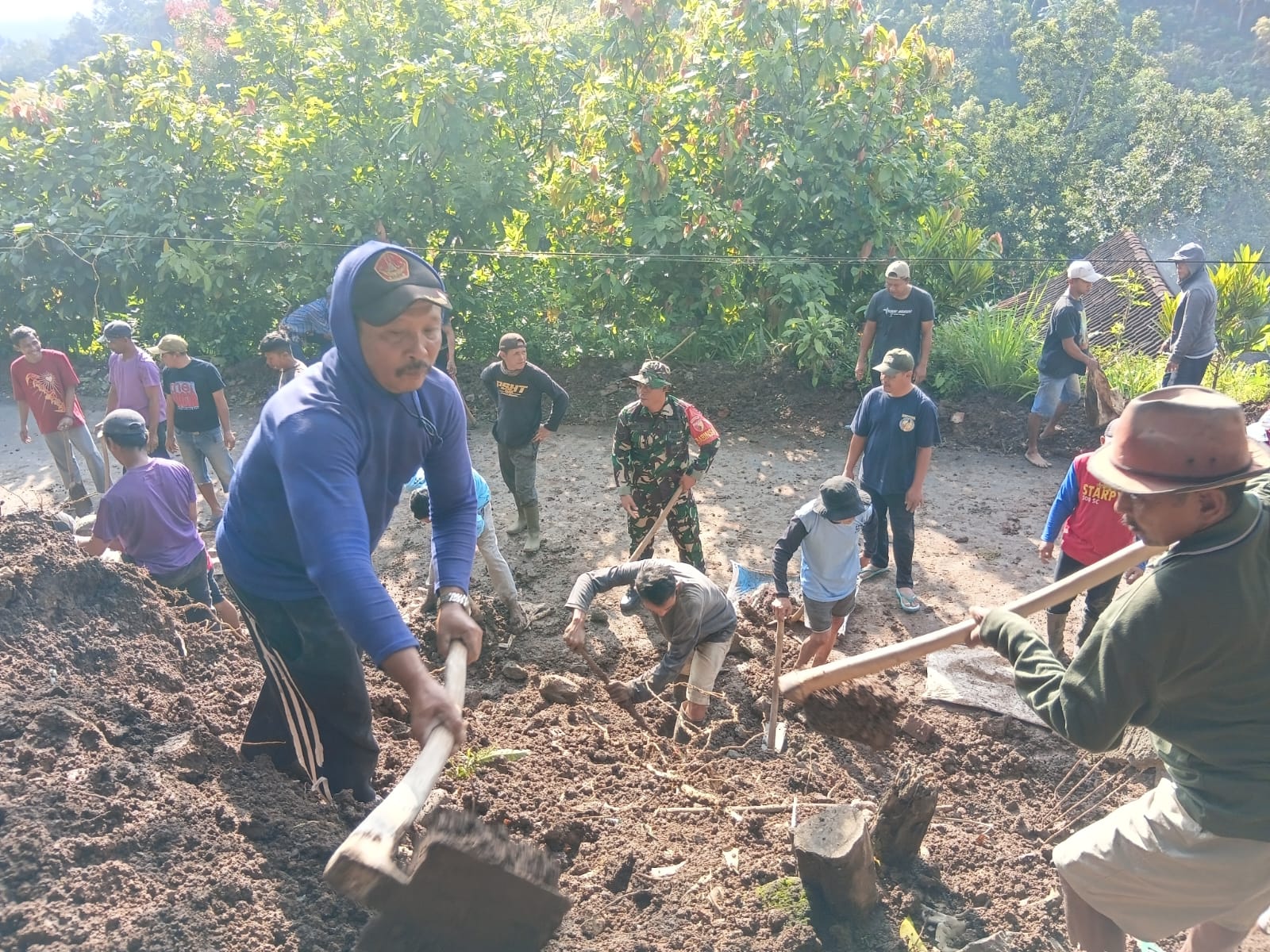 Proses pembersihan dilakukan secara manual dengan peralatan sederhana, mulai dari cangkul hingga sekop. Warga tampak antusias bergotong royong bersama Babinsa demi mempercepat penanganan longsoran tersebut.