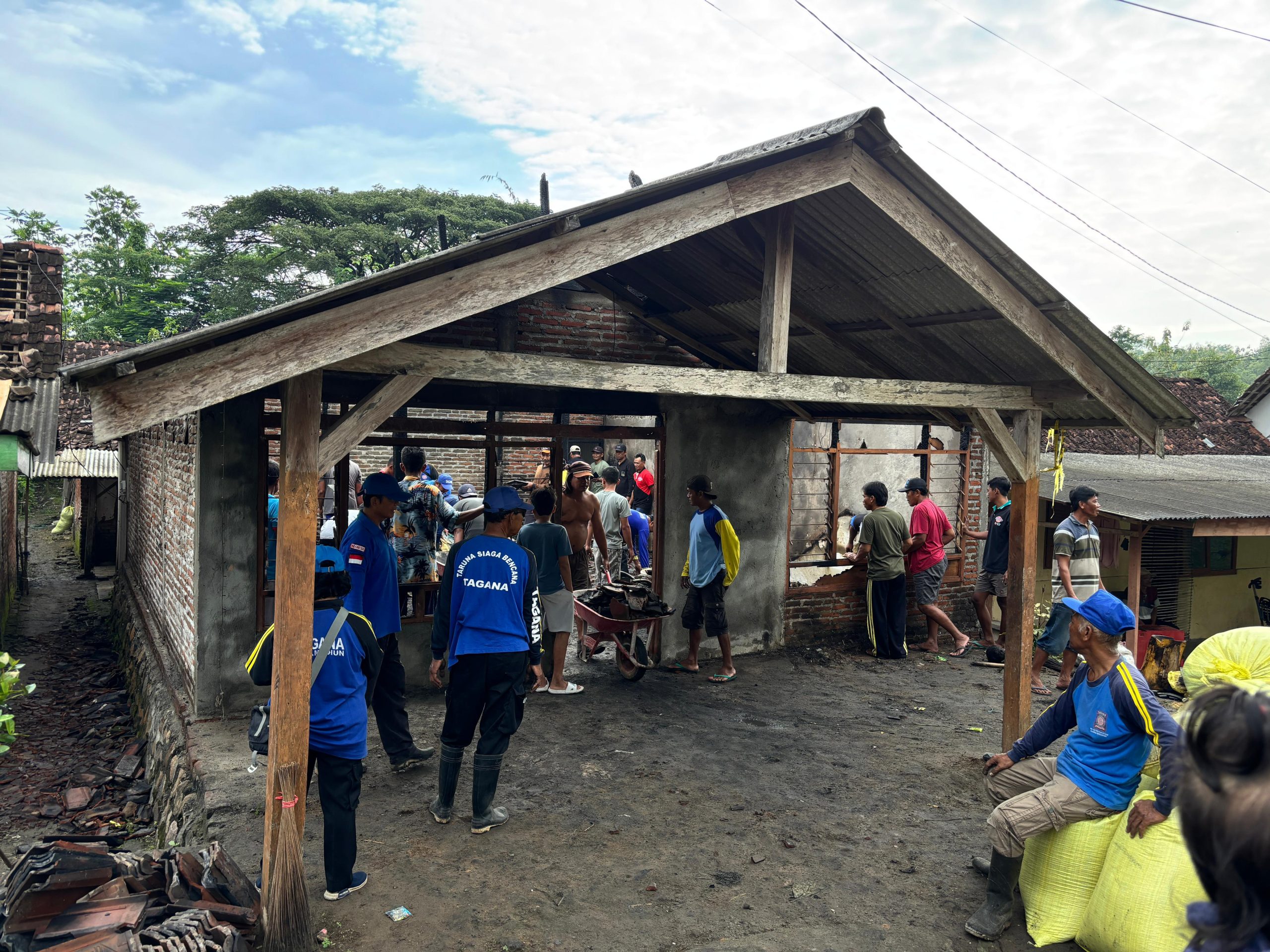Dalam kegiatan tersebut, tampak hadir perangkat desa, Babinsa, Bhabinkamtibmas, serta masyarakat sekitar yang turut memberikan dukungan moril. Bantuan yang disalurkan berupa kebutuhan pokok seperti beras, mie instan, dan bahan kebutuhan sehari-hari lainnya, yang diharapkan dapat meringankan beban korban pasca musibah kebakaran.