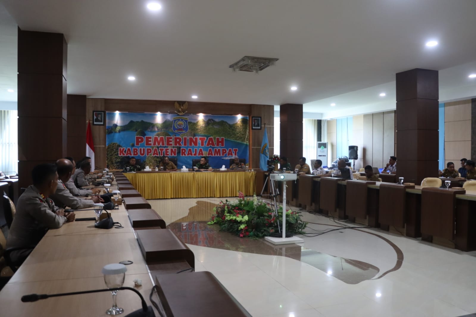 RAJA AMPAT, BUSERJATIM.COM GROUP  – Pemkab Raja Ampat bersama forkopimda mengelar rapat koordinasi melalui vidio conference (vicon) bersama gubernur provinsi Papua Barat Daya, senin (20/04/26).