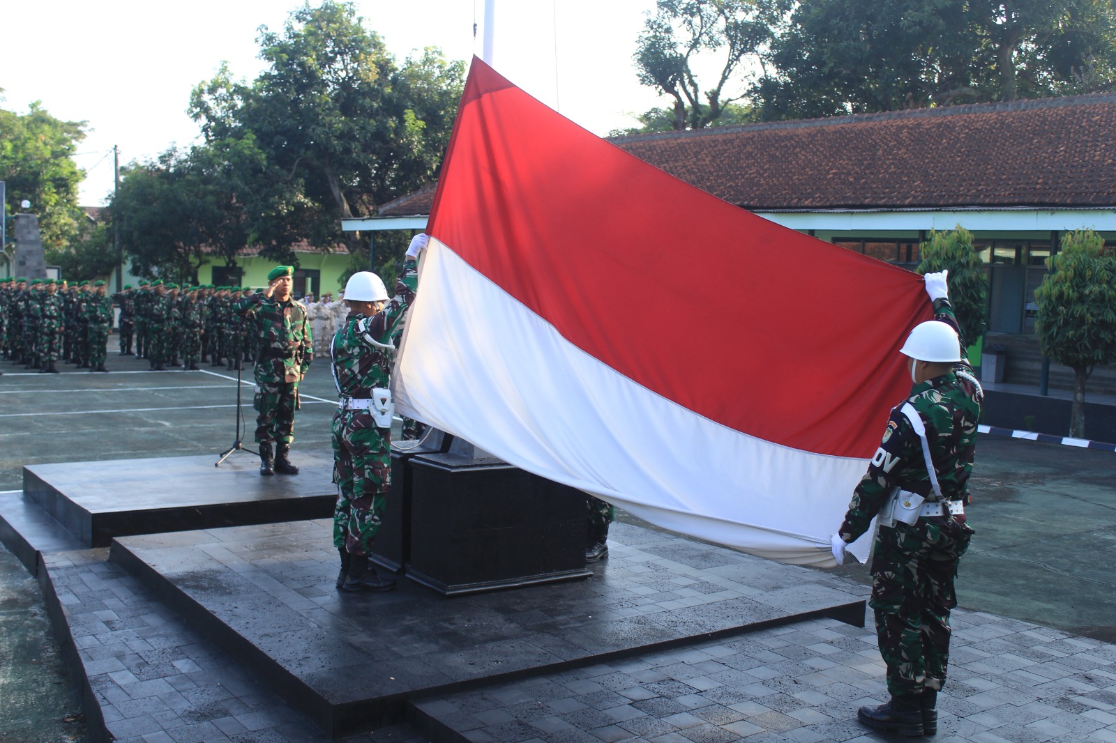 Bertempat di Jalan KH Abdul Halim No. 403, Kelurahan Tonjong, Kabupaten Majalengka, seluruh personel Kodim 0617/Majalengka mengikuti jalannya upacara dengan penuh disiplin dan rasa tanggung jawab.