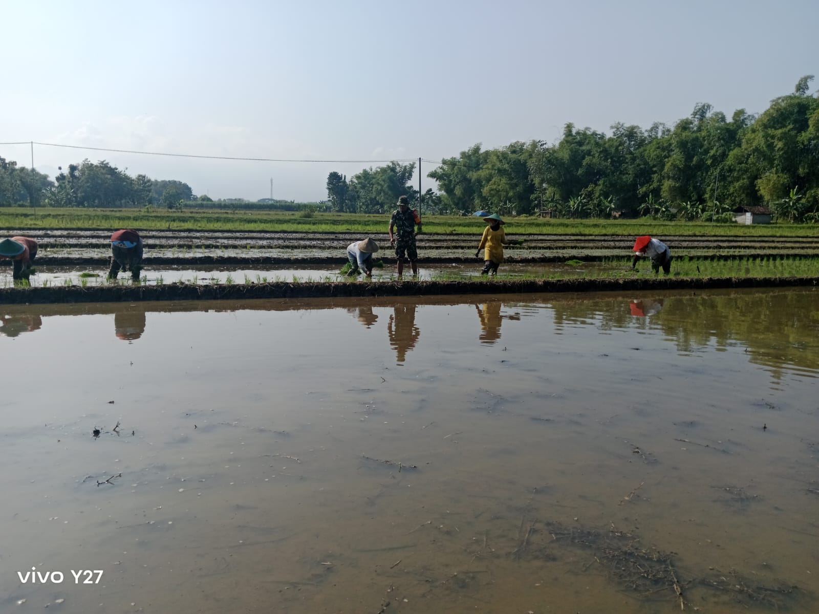 Kegiatan pendampingan tersebut dilakukan di area persawahan milik warga pada musim tanam kali ini. Kehadiran Babinsa di tengah petani bukan hanya membantu proses tanam, tetapi juga memberikan motivasi agar para petani tetap semangat dalam meningkatkan produksi pertanian.