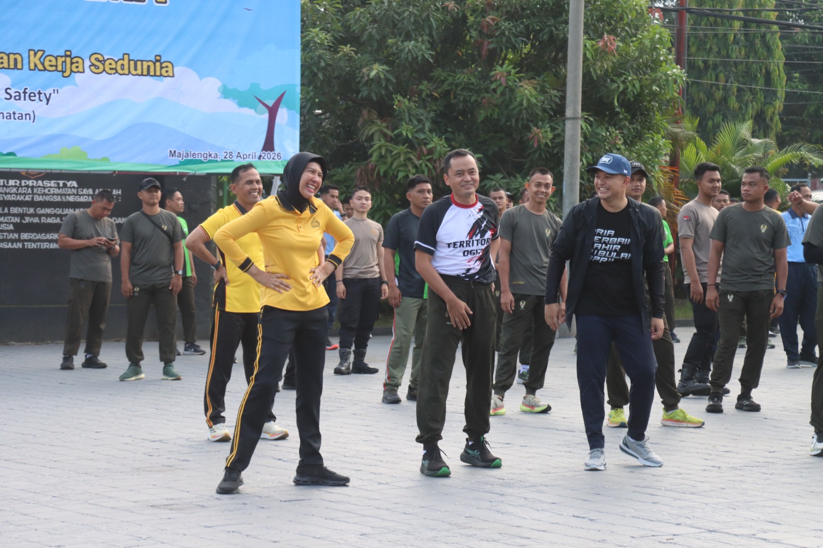 Majalengka – Dalam rangka memperingati Hari Keselamatan & Kesehatan Kerja (K3) Sedunia yang jatuh pada 28 April 2026, para aparat TNI-Polri serta jajaran pemerintah Kabupaten Majalengka menggelar olahraga bersama di Lapangan Apel Polres Majalengka, Jalan KH Abdul Halim No. 518, Kelurahan Cigasong, Kecamatan Cigasong, Kabupaten Majalengka, Selasa (28/4/2026).