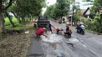 Jalan Aman, Warga Nyaman, Babinsa dan Masyarakat Banjarsari Gotong Royong Tambal Jalan Berlubang
